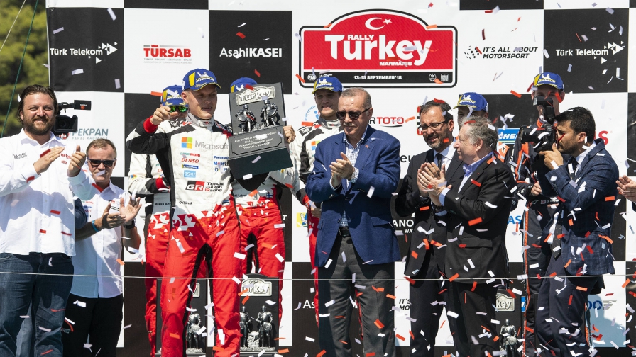 Tänak se colocó a la cabeza de una de las citas más dramáticas en años el sábado después de que sus rivales por el título Thierry Neuville y Sébastien Ogier se retiraran. Se calmó hasta el final del domingo y fue recibido en el podio por el presidente turco, Recep Tayyip Erdoğan.