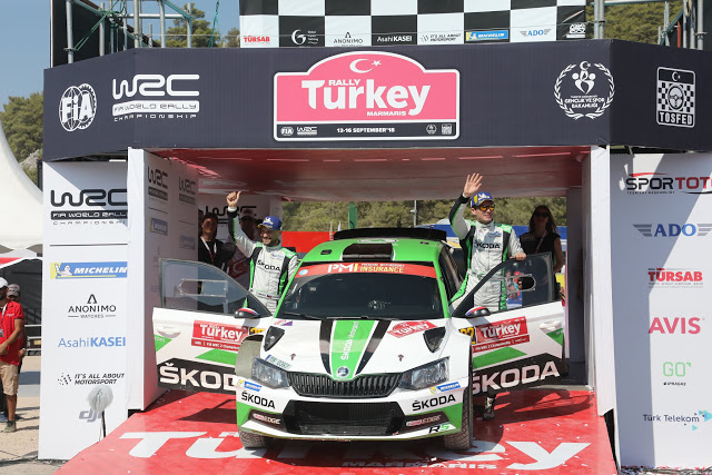 El equipo oficial de ŠKODA formado por los checos Jan Kopecký y Pavel Dresler dieron un gran paso adelante para adjudicarse el título de WRC 2 tras ganar la categoría en el Rally de Turquía (del 13 al 16 de septiembre), 10ª prueba del Campeonato del Mundo de Rallyes de la FIA. Sólo sus compañeros de equipo, los suecos Pontus Tidemand y Jonas Andersson tienen opciones matemáticas de llevarse el título, por lo que el próximo campeón de WRC 2 será uno de estos dos pilotos oficiales de ŠKODA.