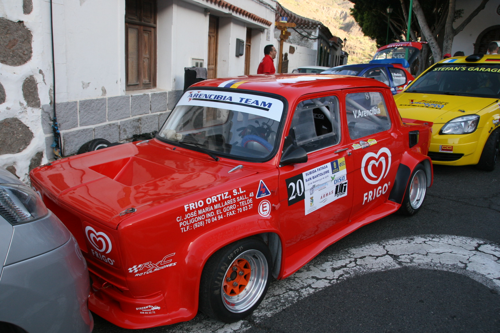 El veterano y carismático piloto grancanario Vicente Arencibia alegró la Subida a Fataga con su ‘pata de cerdo’.