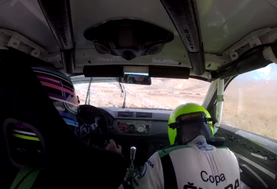 Los compañeros y amigos de Motor Directo Web-Radio publicaron la cámara interior de Isabel Pérez y Jordi Díaz cuando tenían un percance de carrera con su Skoda Fabia en el Rally de Teguise. Por fortuna, todo quedó en un susto.