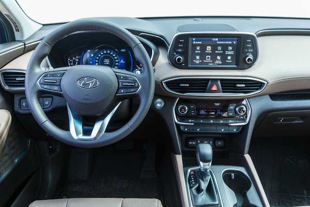 El Nuevo Santa Fe tiene una arquitectura interior refinada y ergonómica. El diseño del habitáculo impresiona por sus colores cálidos y el patrón de inspiración natural, buscando el equilibrio entre comodidad y practicidad. El interior presenta el diseño característicamente premium del Hyundai Santa Fe.