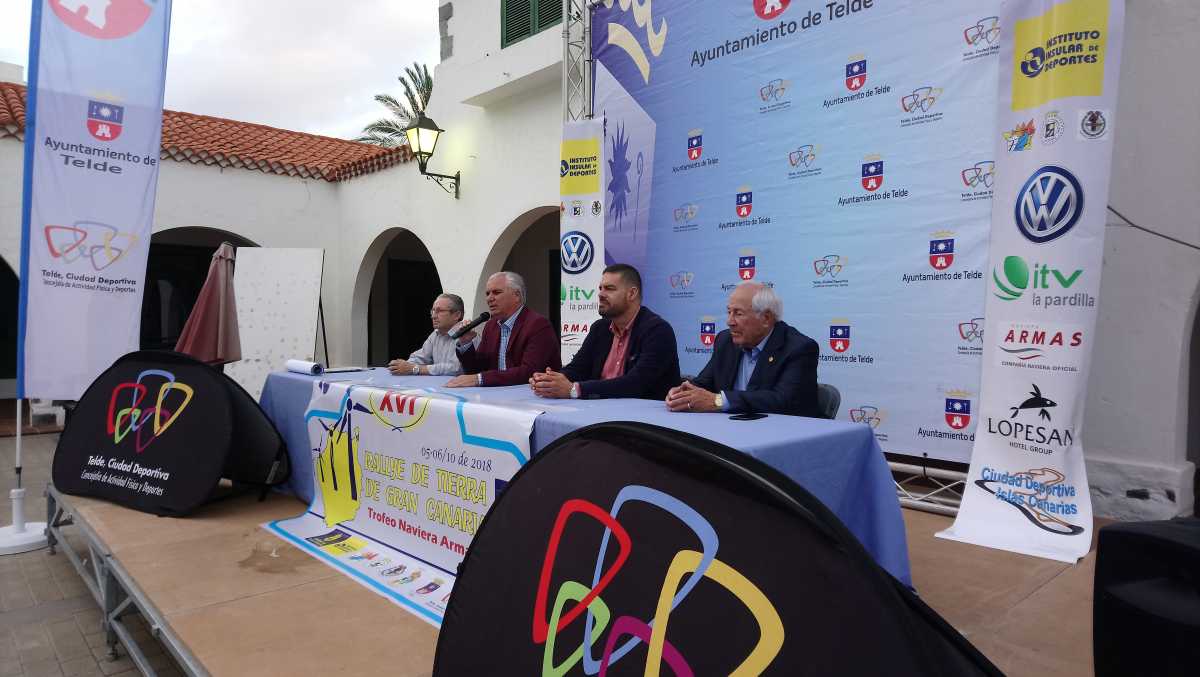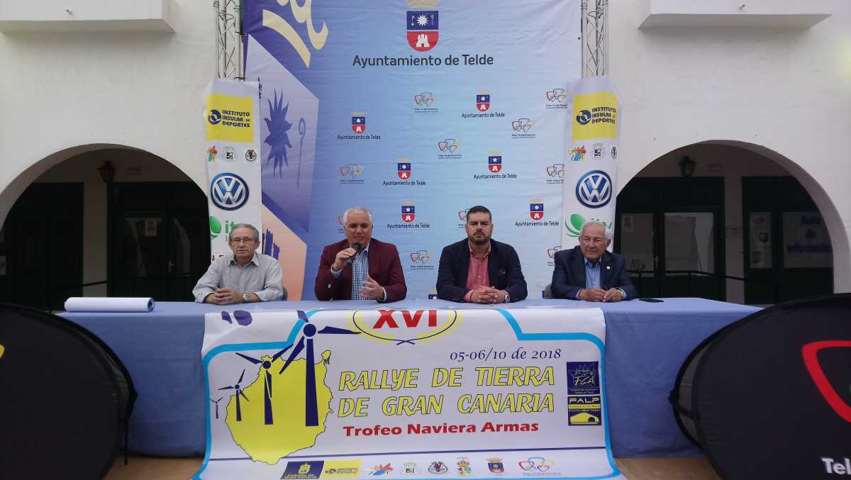 El concejal de Deportes del Ayuntamiento de Telde, Diego Ojeda, junto al presidente en funciones de la FALP, José Víctor Rodríguez, acompañados de Emilio Monzón, copropietario del Circuito Islas Canarias y del vicepresidente en funciones de la FALP, Miguel Angel Domínguez, presentaron anoche el Rallye de Tierra de Gran Canaria, que ha reunido para este fin de semana a un total de 38 equipos, 25 en la modalidad de coches y 13 quads.
