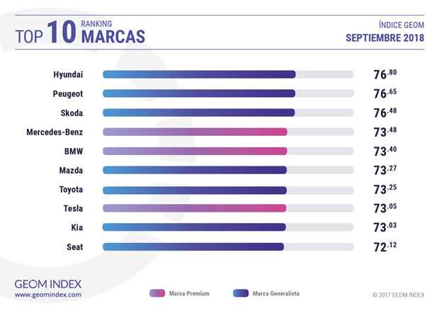 -«La igualdad reina en el GEOM Index, ya que apenas seis décimas separan a tres marcas generalistas en el podio final del mes: Hyundai, Peugeot y Skoda»