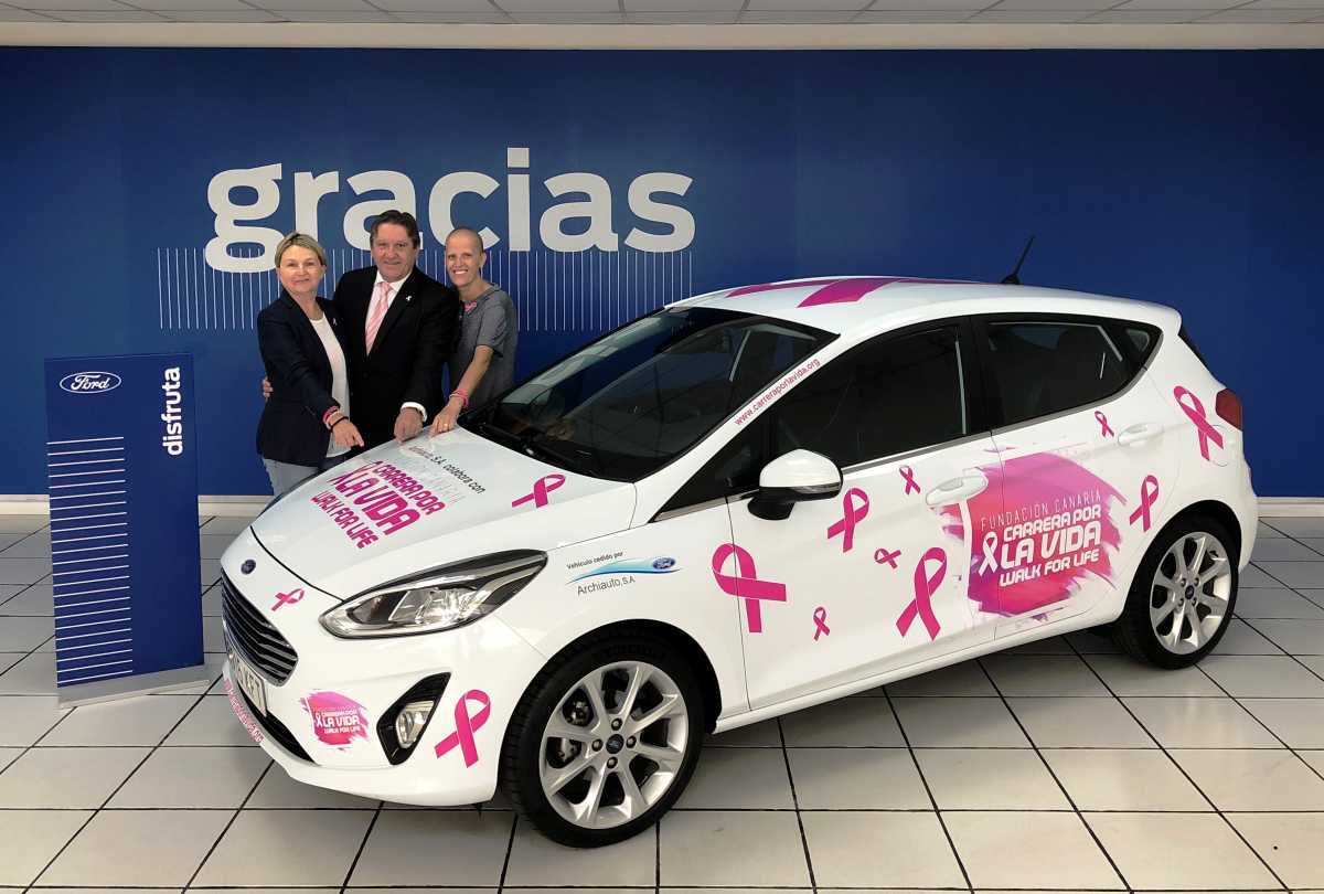 En un sencillo acto celebrado en las instalaciones de Santa Cruz de Tenerife, se materializó la entrega de la unidad de Ford Fiesta Titanium 1,5 TDCI, que ARCHIAUTO S.A., cederá a la Fundación Canaria “CARRERA POR LA VIDA”, destinado a facilitar las labores de logística y cobertura que esta organización solidaria desarrolla en favor de los canarios enfermos de cáncer.