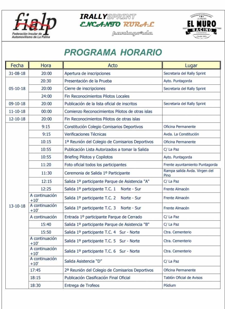 Desde el comité organizador del “I Rallysprint Encanto Rural” ya nos encontramos de lleno con los preparativos de la prueba y atando todos los cabos necesarios para que el próximo día 13 de Octubre podamos disfrutar de un bonito fin de semana de automovilismo en la isla de La Palma.