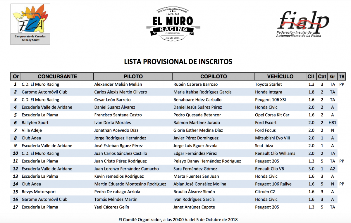 Finalmente contaremos con una veintena de inscritos que a buen seguro nos brindarán una bonita lucha para definir las posiciones de los campeonatos que aún siguen abiertos.