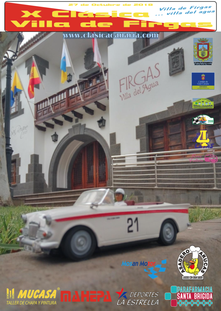 El C.D. Cuatro Latas de Gran Canaria, club FEVA no 348, organiza el próximo día 27 de Octubre en la isla de Gran Canaria la X Clásica Villa de Firgas, evento de regularidad para vehículos clásicos que será puntuable para la XII Copa Clásica Gran Canaria 2018.
