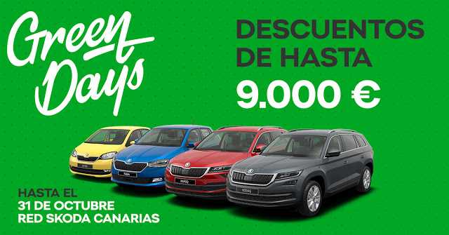 Ya están aquí de nuevo los Green Days de ŠKODA Canarias, con descuentos de hasta 9.000 euros en toda la gama, desde el 15 hasta el 31 de octubre. La marca verde baja sus precios en más de 200 unidades en stock, para que cada cliente pueda adquirir el vehículo de sus sueños a un precio único.