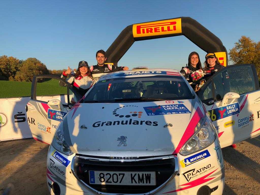 Emma Falcón y Eduardo González han hecho historia este domingo 14 de octubre al adjudicarse en el Rally Liepaja el título del ERC Ladies Trophy. El equipo canario ha cumplido con su cometido en la última prueba del FIA European Rally Championship que se ha celebrado este fin de semana y, aunque con un ritmo lejano al que estaban acostumbrados con su coche habitual, el segundo puesto en ese apartado femenino y el séptimo en ERC3 les han proporcionado los puntos suficientes para llevarse en la maleta de vuelta a su tierra ese entorchado internacional, el primero de una piloto española en un campeonato de rallies FIA.
