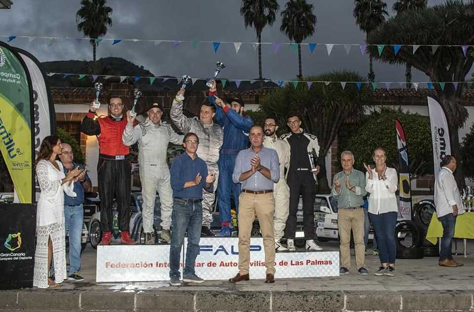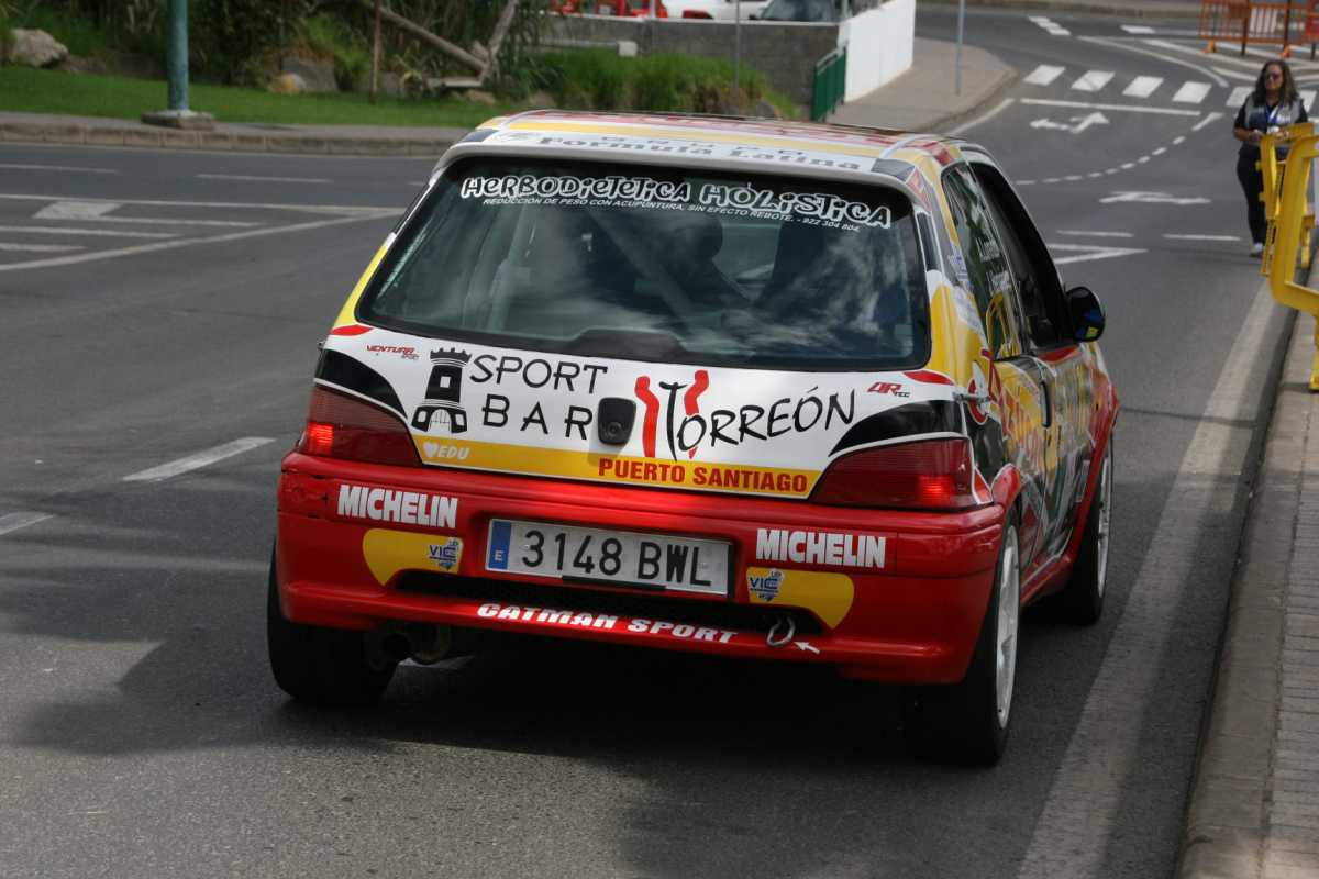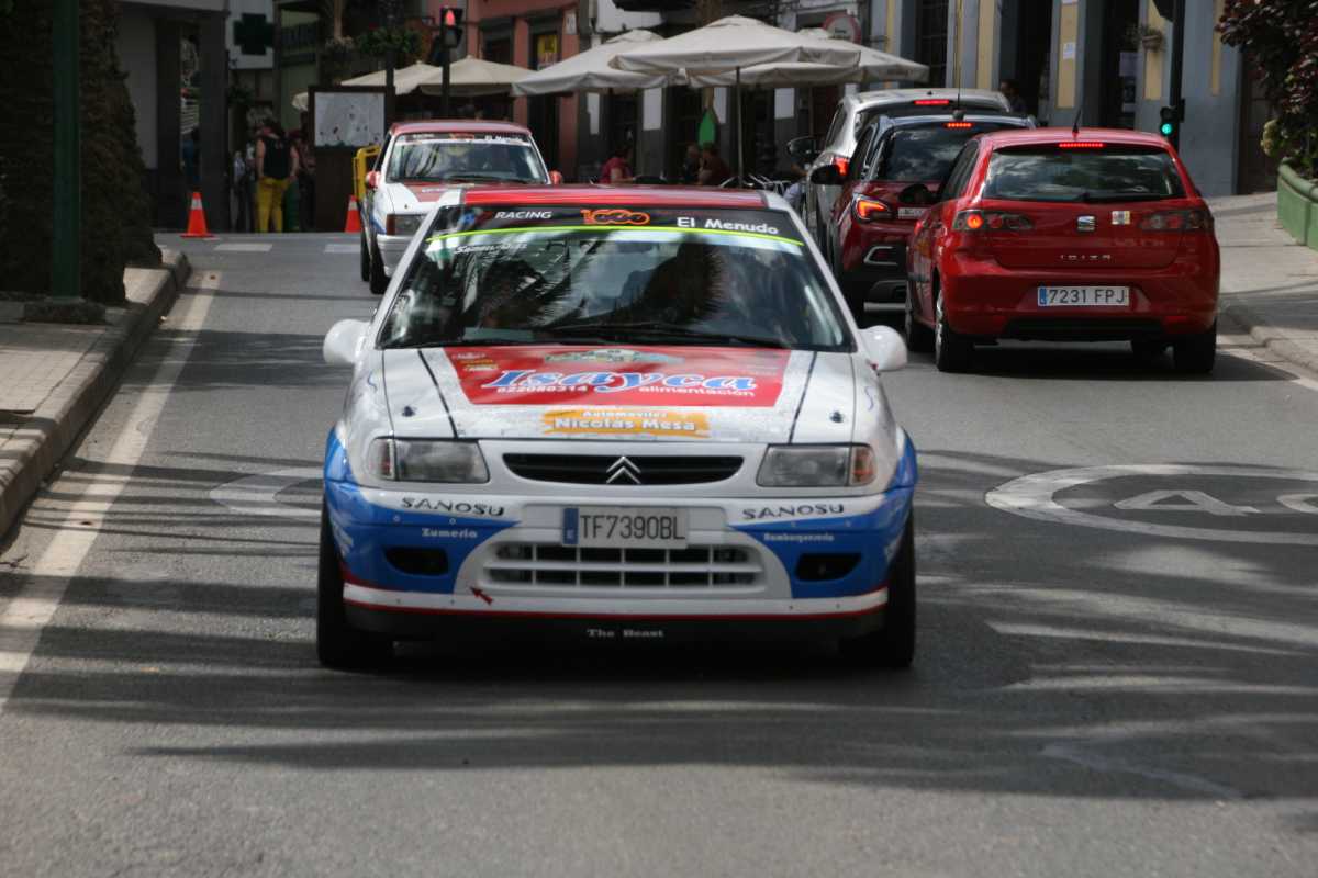 »Aguas de Teror, dos vueltas al tramo final. Por este bonito trazado parecía que ya estaba todo decidido, pero no. Aún queda una sorpresa más: se queda justo en la salida Samuel Díaz por culpa de una avería en el Saxo, mientras que los demás compañeros ya van de camino a la plaza del Pino con el trabajo hecho.