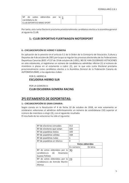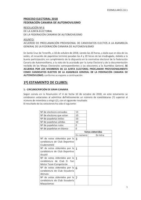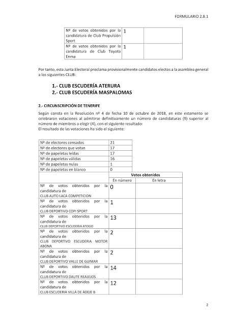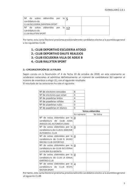 Publicamos los resultados del proceso electoral 2018 de la Federación de Canarias de Automovilismo (FCA).