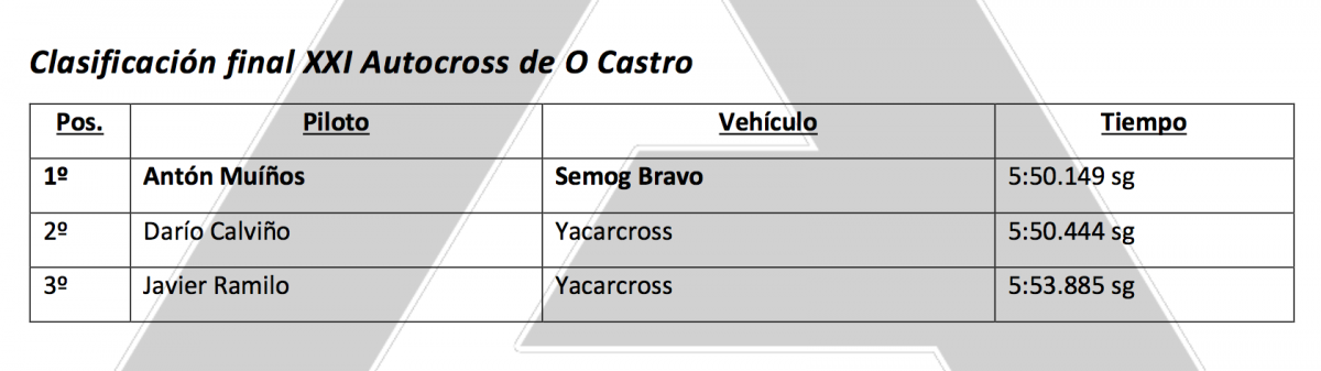 Tras la suspensión de la cita que este fin de semana se iba a disputar en Talavera de la Reina, el equipo de Antón Muíños decidió no quedarse en casa y viajar hasta Rianxo para competir en la cuarta prueba del Campeonato Gallego de Autocross, y el resultado no pudo ser mejor, ya que el piloto afincado en Carral volvió a realizar una gran demostración de pilotaje y valor para acabar subiendo a lo más alto del podio.