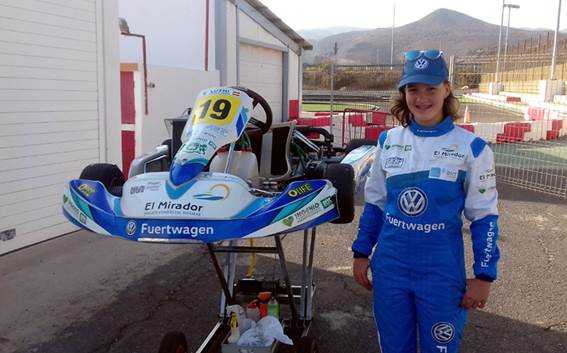 La joven piloto grancanaria retoma la actividad con su participación en la prueba “de casa” con ocasión de la II Prueba del Campeonato de Canarias de Karting a disputarse durante este fin de semana (27 – 28 de Octubre) en el Circuito de Maspalomas.