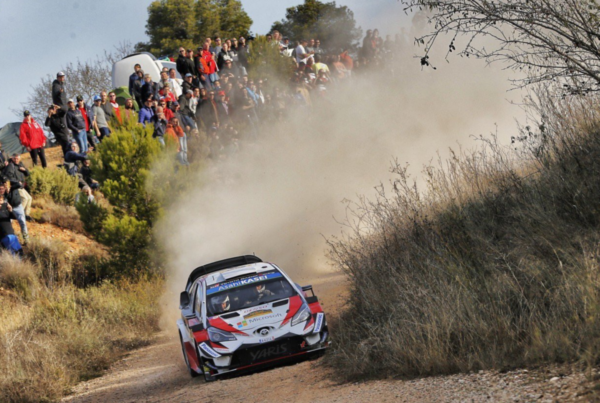 Sobre la grava de los caminos del Rally RACC sufrió Ogier, que perdió tiempo al salirse en el segundo tramo del día, pero el siguiente en perder tiempo, esta vez por un pinchazo, fue Lattvala, lo que dejó a Tänak con una ventaja superior a los 10 segundos que fue aumentando sucesivamente.