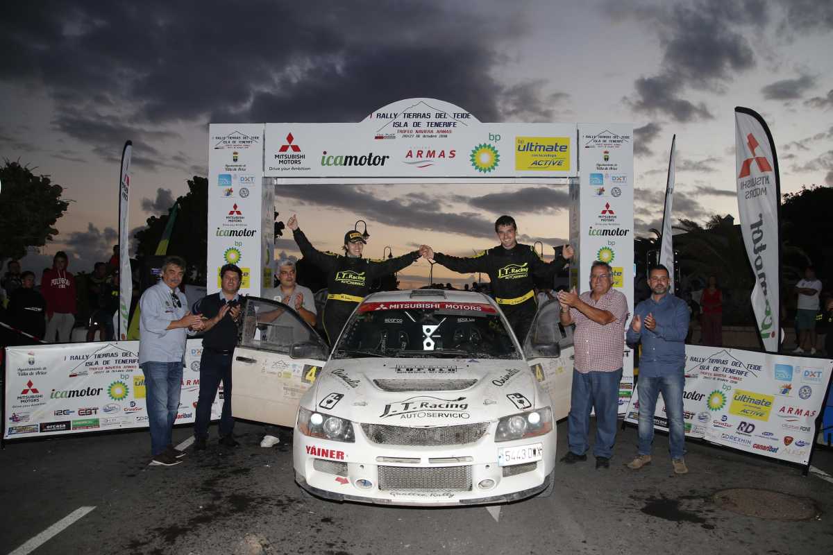 Jesús Tacoronte-María Sáez, al volante de un Mitsubishi Lancer Evo IX, lograron una victoria contundente. En su segundo triunfo consecutivo en el Campeonato de Canarias, el piloto tinerfeño y la copilota grancanaria sumaron la victoria en todas las pruebas especiales. Después de ocho tramos cronometrados acumularon un tiempo de 36:26.9, inscribiendo así su nombre como primeros vencedores del I Rally Tierras del Teide – Isla de Tenerife · Trofeo Naviera Armas, prueba brillantemente organizada por el Club ProGT Arafo.