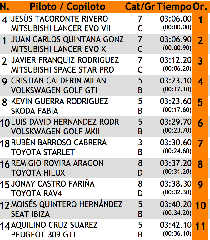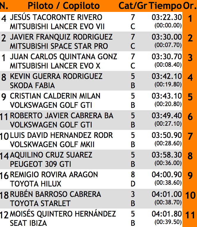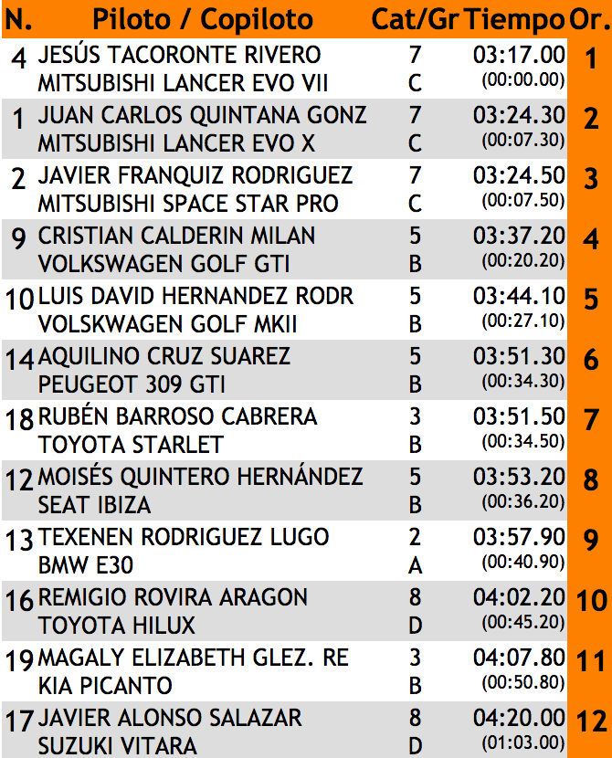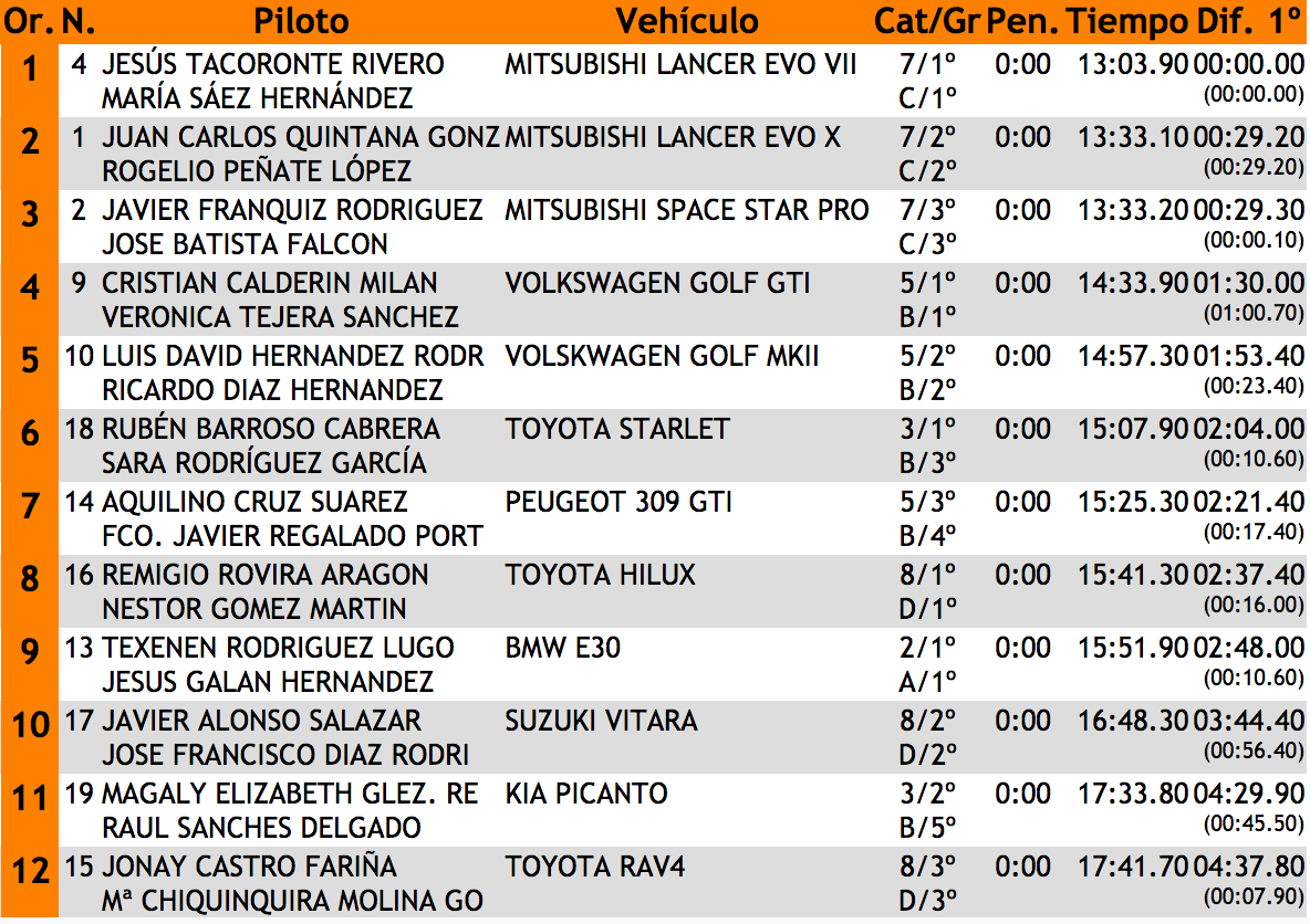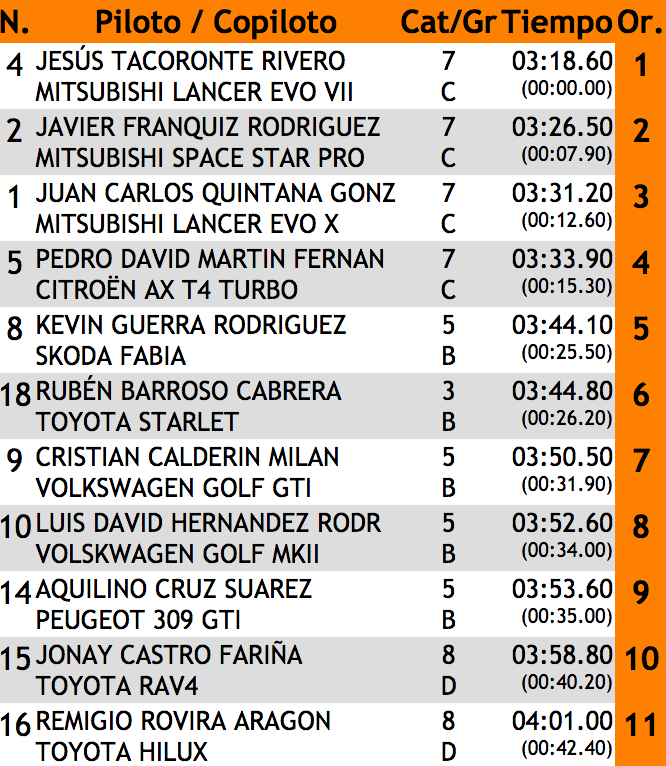 Toda la información de tiempos en http://www.tiemposonline.com/rallyes/tierrasdelteide18/