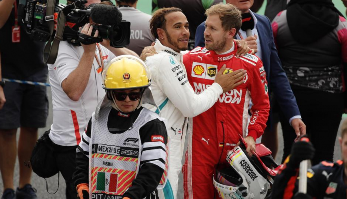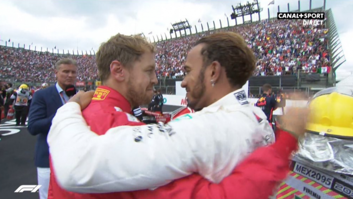 Vettel se apareció en la celebración de Hamilton, quien aseguró el título de la temporada al acabar cuarto, para abrazarlo y decirle que nadie mejor que él para merecer el campeonato, después de lo cual el británico se dirigió al público y señaló a su rival para que la gente lo aplaudiera.