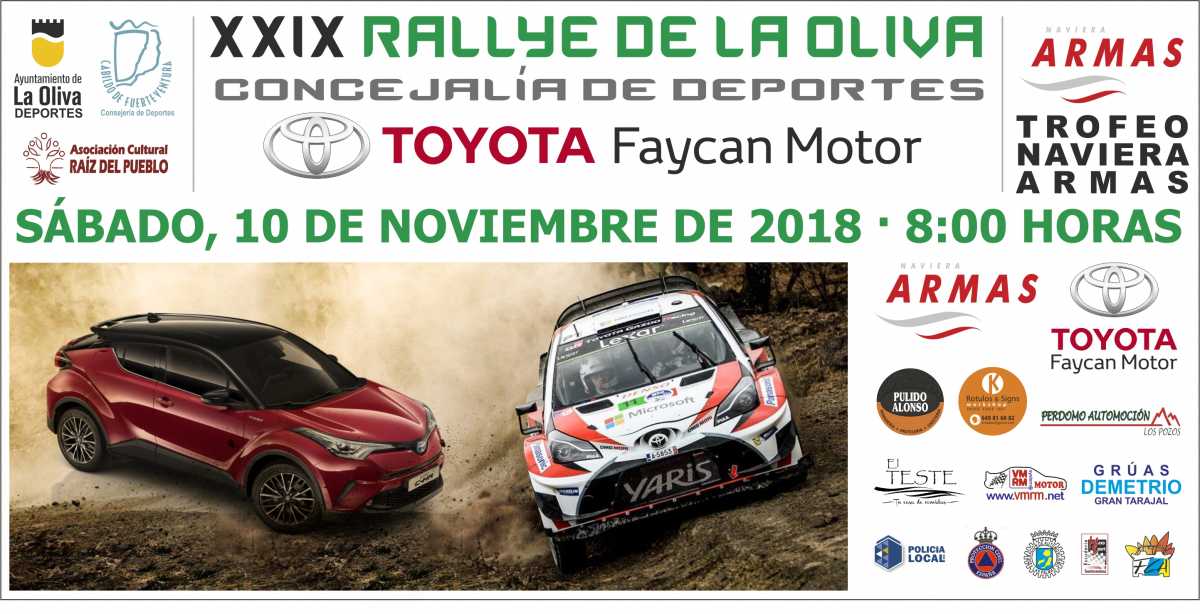 ESCUDERÍA MAXO SPORT DE FUERTEVENTURA – FEDERACIÓN INTERINSULAR DE AUTOMOVILISMO DE LAS PALMAS – CONCEJALÍA DE DEPORTES DEL AYTO. DE LA OLIVA – FEDERACIÓN CANARIA DE AUTOMOVILISMO – TOYOTA FAYCAN MOTOR – NAVIERA ARMAS: TROFEO NAVIERA ARMAS 2018.