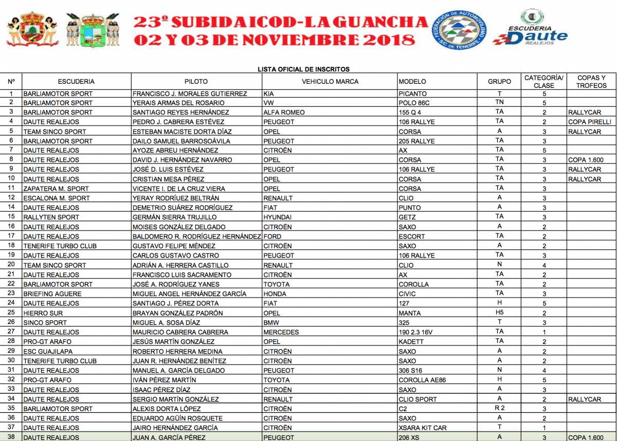 Publicamos el orden de salida de la XXIII Subida Icod – La Guancha, cita que se disputará este próximo sábado en la isla de Tenerife.
