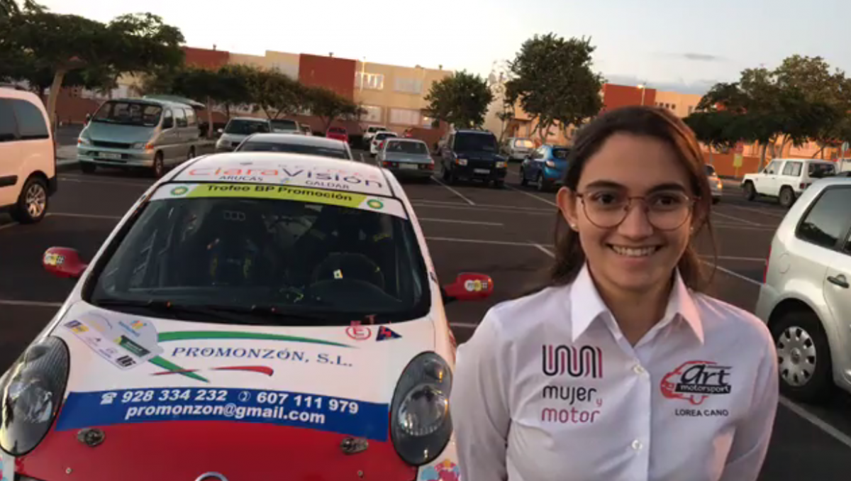 Hablamos con la joven piloto grancanaria Lorea Cano, que con su Nissan Micra correrá en el Maspalomas. Después de haber empezado como copiloto se pasó a la izquierda, donde se encuentra muy contenta porque, como ella mismo afirma «es mi sitio, aquí me quedo».