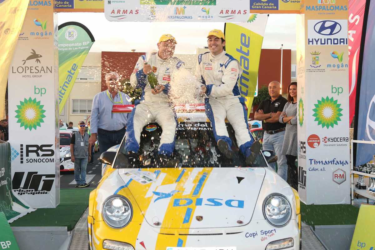 Épica victoria de Enrique Cruz y el equipo DISA Copi Sport en el Rallye de Maspalomas, disputado hoy por las carreteras del sur de la isla de Gran Canaria. El doble pinchazo sufrido en la primera etapa del viernes fue todo un revulsivo para sacar a relucir la brillantez de todo el equipo, logrando finalmente doblegar a sus rivales y llegar primeros a la meta del último tramo. El objetivo fue conseguido, pues salen líderes del Campeonato de Canarias de Rallyes 2018.