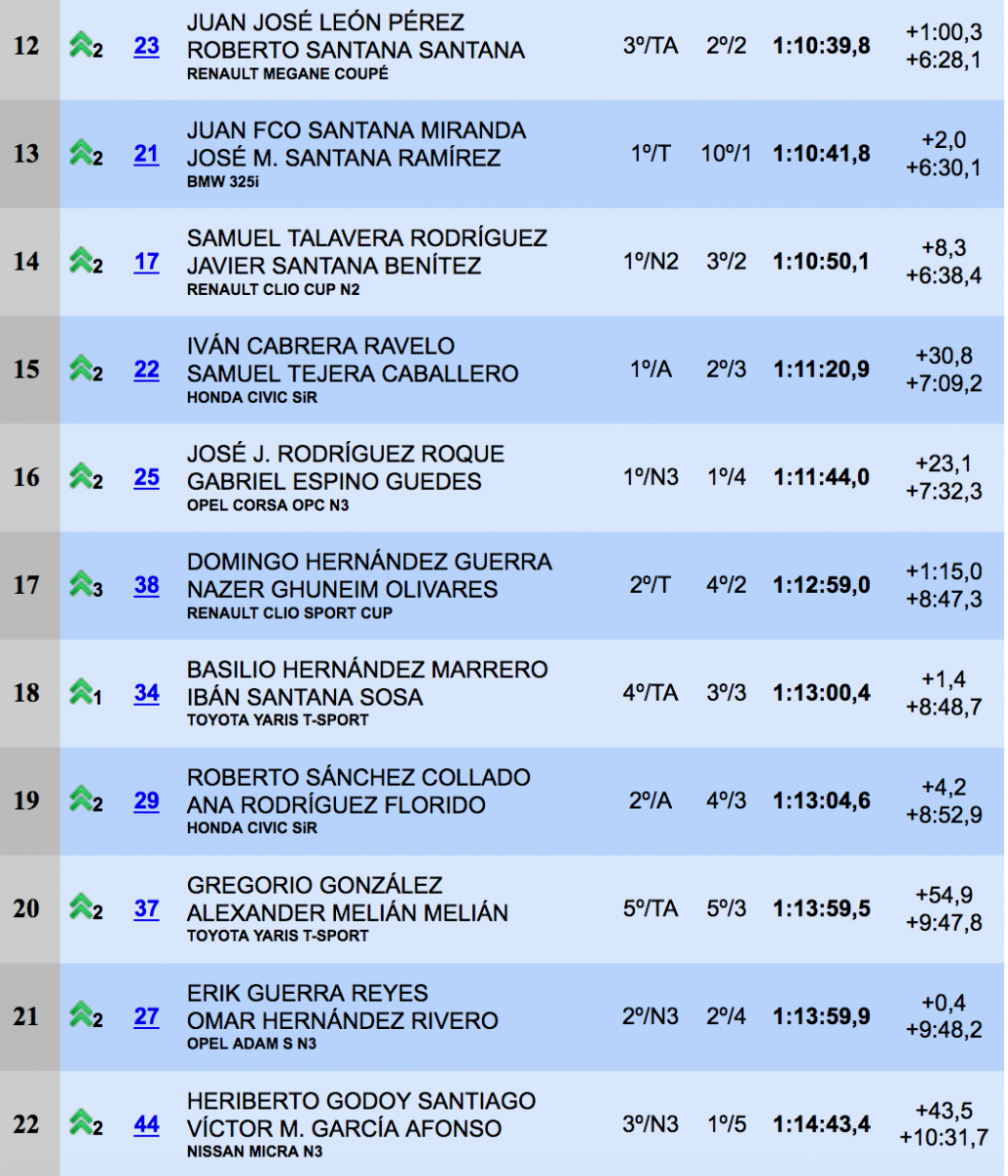Juan Francisco Santana-José Santana ganaron en la BMW Power y fueron segundos en el BP de Promoción. Por otro lado, Iván Cabrera-Samuel Tejera se adjudicaron la Copa Faroga 1.6, Heriberto Ramos ganaba como Mejor Piloto Debutante y Gabriel Espino como Mejor Copiloto Debutante.