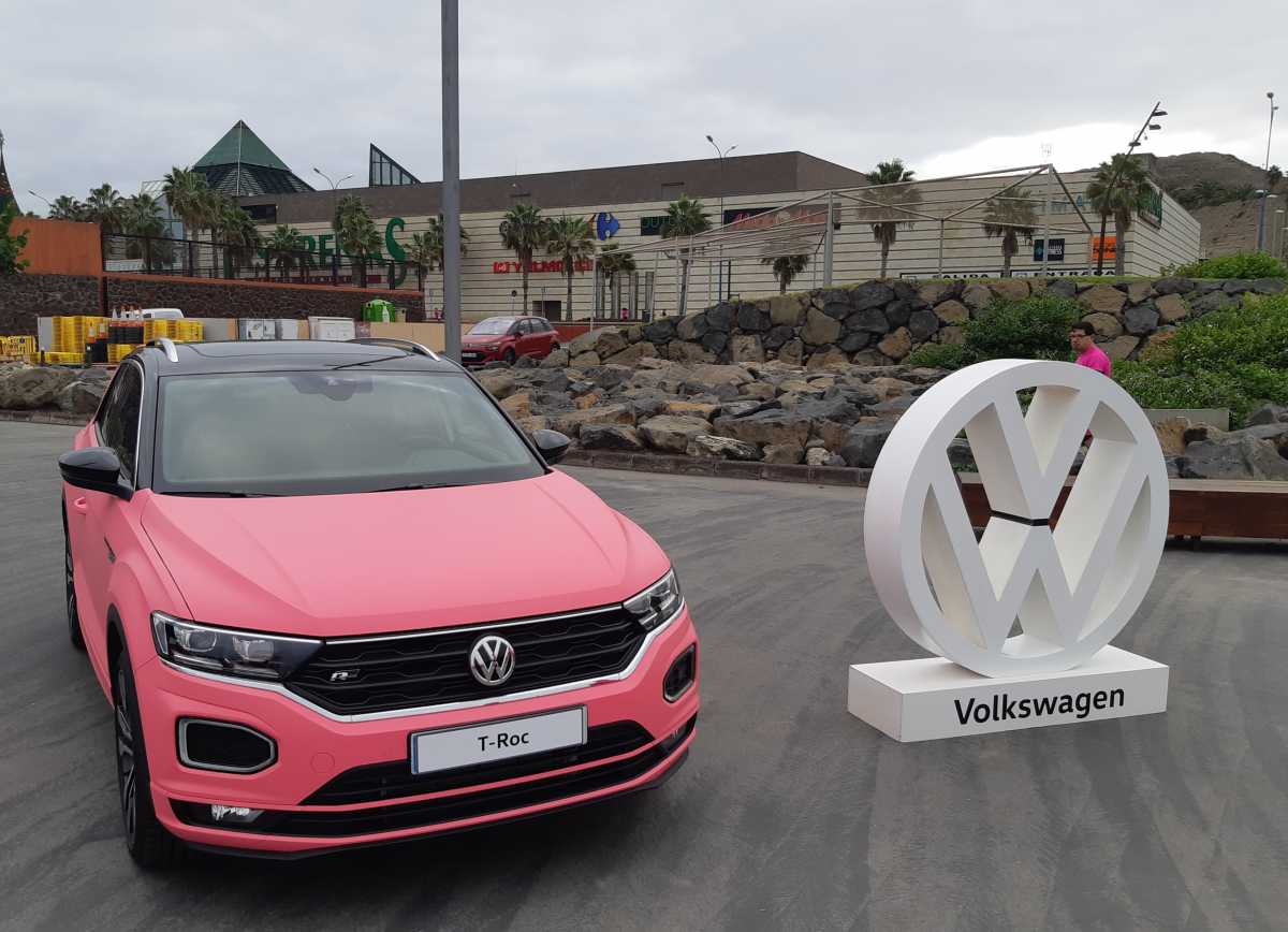 Volkswagen Canarias se vuelca con la lucha contra el cáncer de mama cambiando el tradicional azul por el rosa. La nueva estrella de la marca, el Volkswagen T-Roc, cambió sus colores por un tono muy favorecedor, el rosa, acaparando todas las miradas y convirtiéndose en todo un símbolo de la lucha contra esta enfermedad.