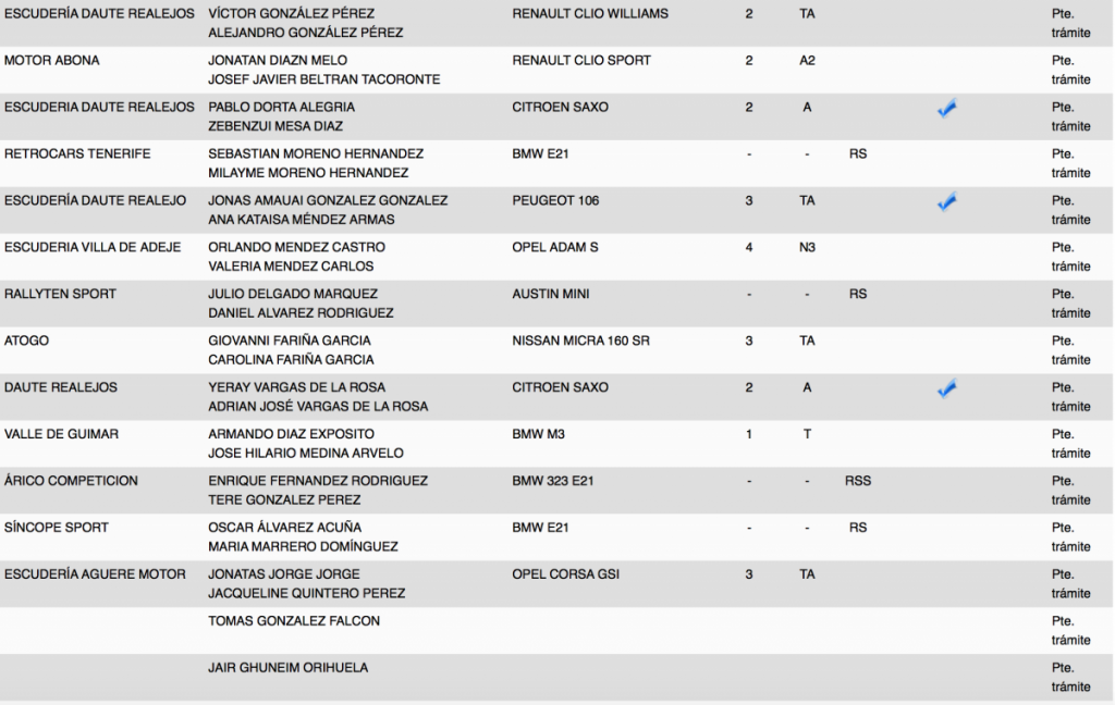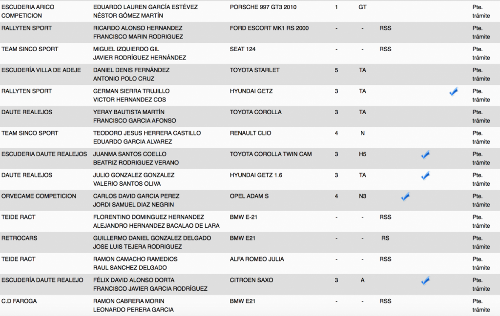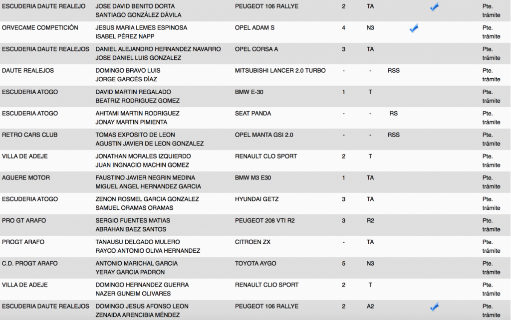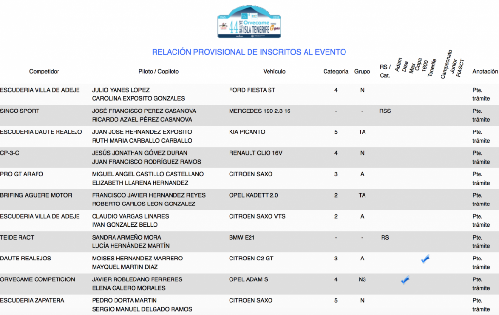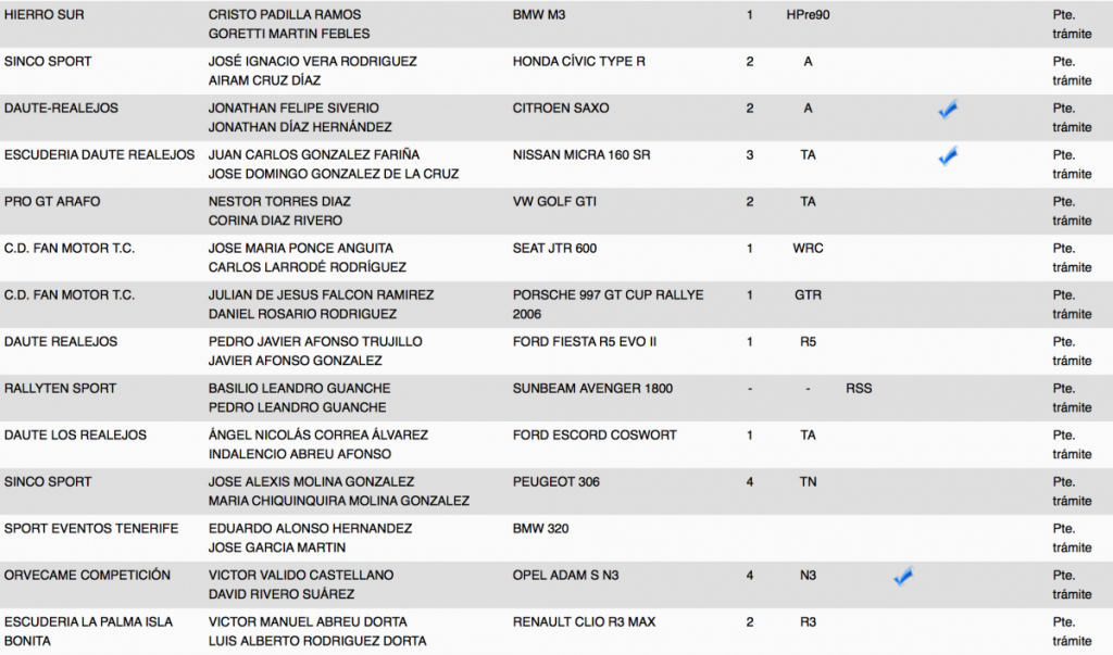La lista oficial de inscritos la conocernos el próximo martes 12 a las 20.00 horas en la web y redes sociales oficiales. Recordar que las verificaciones administrativas serán en Orvecame Taco jueves 15 a las 18.30h, sin embargo las verificaciones técnicas en el Parque Marítimo de Santa Cruz junto al parque de trabajo el viernes 16 desde las 14.30h