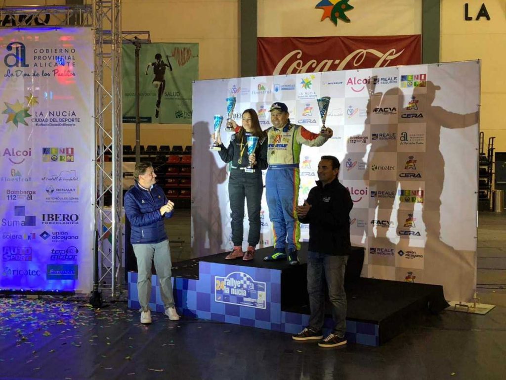 La joven copiloto valenciana, de 22 años de edad y que realiza habitualmente labores de ‘ouvrieur’ para el pentacampeón de España de rallyes Miguel Fuster, sustituyó en esta prueba a José Crisanto Galán, que no pudo acudir a La Nucía debido a compromisos profesionales, y desempeñó su labor de forma más que satisfactoria, viendo recompensada su actuación con su presencia al final del rallye en lo más alto de cuatro podios. Dos junto con Aznar, como ganadores ambos en dos ruedas motrices y el grupo GT, y otros dos en solitario, como vencedora entre las copilotos femeninas y los copilotos junior.