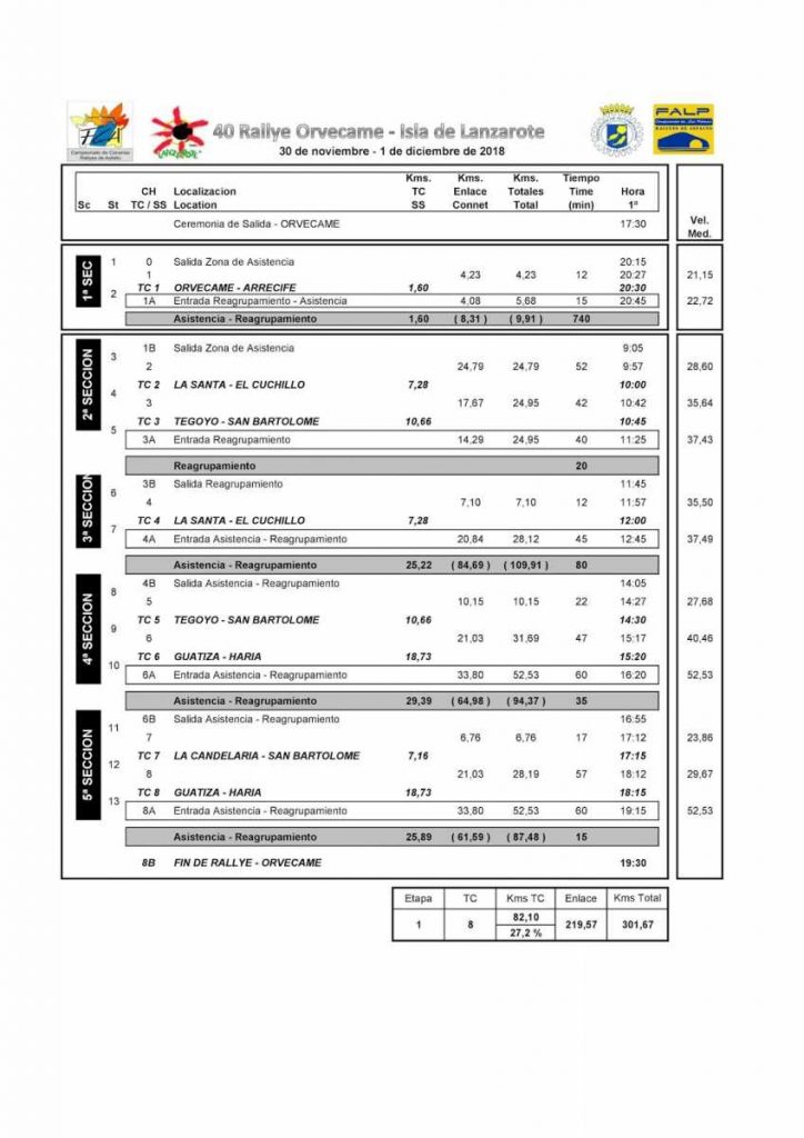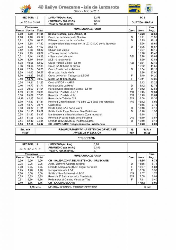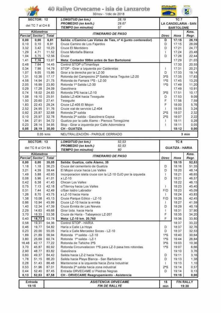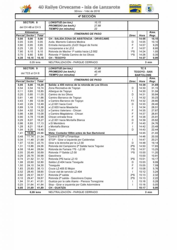 Desde este momento ya está publicado en la página web de la FALP, organizador del 40º Rallye Orvecame-Isla de Lanzarote 2018, el nuevo rutómetro-itinerario con las modificaciones realizadas y la restante documentación con los cambios relativos a los tramos.
