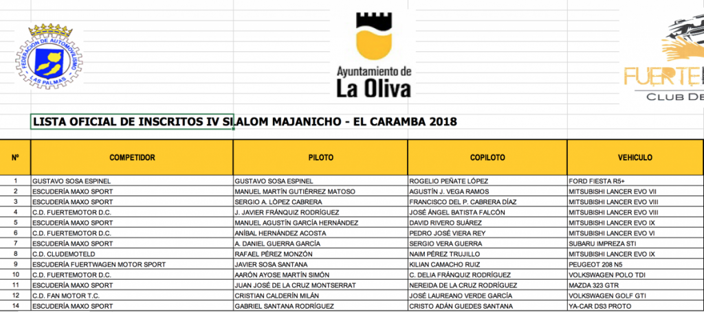 El Slalom Majanicho – El Caramba · Trofeo Naviera Armas cuenta con el apoyo del Cabildo de Fuerteventura y su consejería de deportes, el Ayuntamiento de La Oliva, Naviera Armas, Mitsubishi Motors – Fránquiz Automoción, Hotel Origo Mare Pierre & Vacances, CreArte Rotulación – Impresión Digital, Ambis Arquitectura & Consulting, Imprenta Hermanos Umpiérrez, Aluminio y Cerrajería Araya AluseFuer, Tapicería Maxorata, además de Protección Civil, Policía Local, la FALP y la FCA.