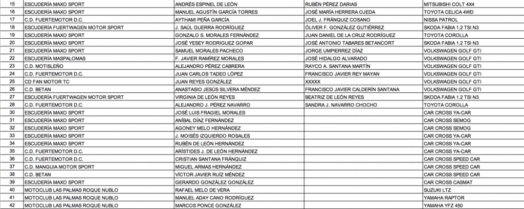 Gustavo Sosa-Rogelio Peñate lucirán el número uno en un Ford Fiesta R5+ con el que lucharán por la victoria. Lo harán frente a un grupo de diferentes Mitsubishi Lancer muy bien armados; Manuel Gutiérrez-Agustín Vega (Evo VII), Sergio López-Francisco Cabrera (Evo VIII), Javier Fránquiz-José Ángel Batista (Evo VIII), Manuel Agustín García-David Rivero (Evo IX), Aníbal Hernández-Pedro Viera (Evo VI) y Rafael Pérez-Naim Pérez (Evo IX) tratarán de pelear por las primeras posiciones.