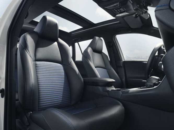 RAV4 hybrid Luxury, por su parte, añade a todo lo que incluye RAV4 hybrid Feel!, el sistema de Alerta de Tráfico Trasero (RTCA), Detector de Ángulo Muerto (BSM), sistema de navegación GO con funciones avanzadas, retrovisor interior inteligente con visualización de imagen de la cámara trasera, Sistema de Visión 360º, portón de maletero con apertura automática pasando el pie bajo el paragolpes posterior y tapicería de cuero, a elegir entre tres colores: negro, beige o gris.