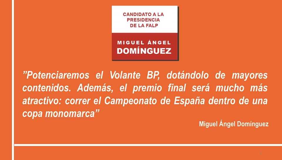 1.- Apuesta decidida por reforzar el Volante BP. Estará dotado de mayores contenidos y además, el premio final será mucho más atractivo y que consistirá en Correr el Campeonato de España de Rallies dentro de una copa monomarca. Es una forma de promocionar nuestro automovilismo a nivel nacional y sobre todo, es una fórmula para proporcionar verdaderas oportunidades de desarrollo a los deportistas que tienen potencial.