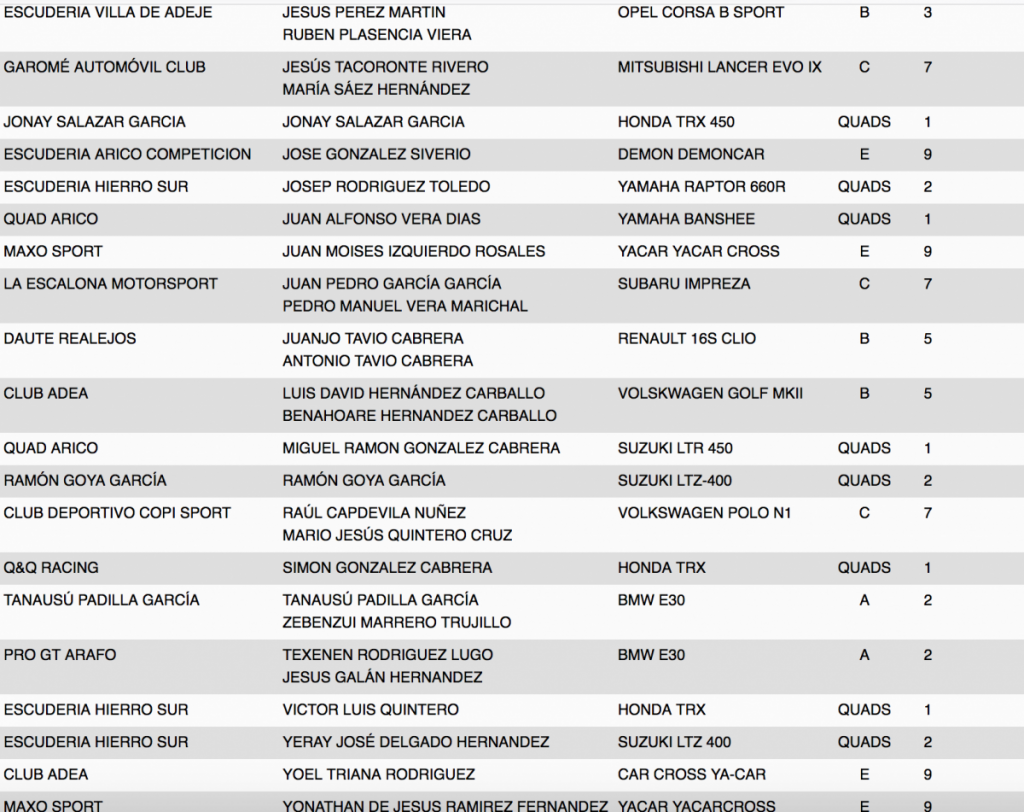 La relación provisional de inscritos (publicada en la web oficial) deja entrever un gran día de carreras en la isla del meridiano cero, pues al atractivo de retomar la competición en el circuito más occidental y meridional de Europa, se une también una calidad de inscripción notable. Serán nada menos que 34 equipos, divididos en 15 turismos, 6 kart cross y 13 quads.