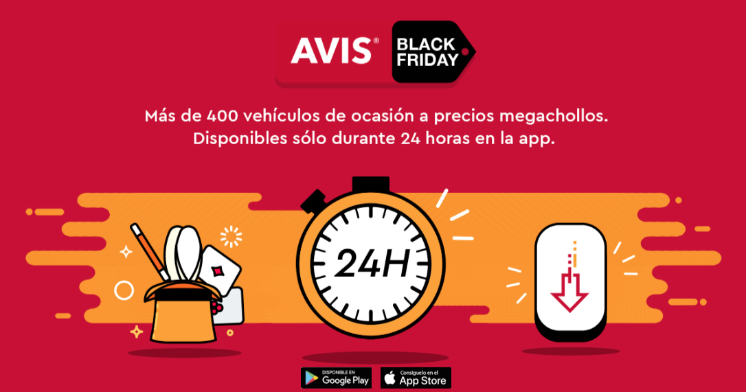 La cuenta atrás de la segunda edición de AVIS Black Friday ha comenzado. 24 horas con más de 400 vehículos con precios megachollos estarán disponibles en la APP AVIS Black Friday, que se puede descargar en Apple Store y Google Play.