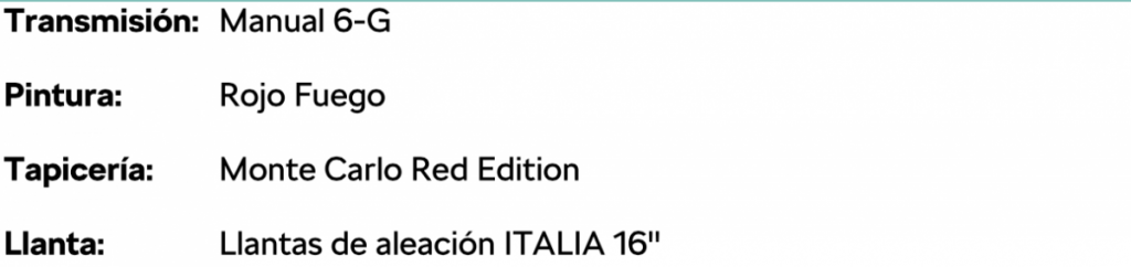 El pequeño urbano de 1.129 kilos tiene un maletero que ofrece una capacidad de 330 litros y tra en su interior unos asientos de diseño deportivo con apoyacabezas integrados, un tapizado vistoso, volante deportivo forrado en piel con costuras a contraste y pedales deportivos en aluminio.