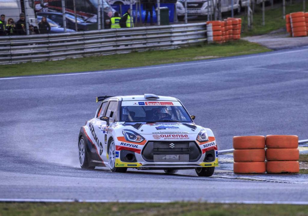 Vinyes-Mercader al volante de su Swift R+, estuvieron entre los que disputaron el mencionado TCC sobre una pista mojada y que ocasionó más de un susto.