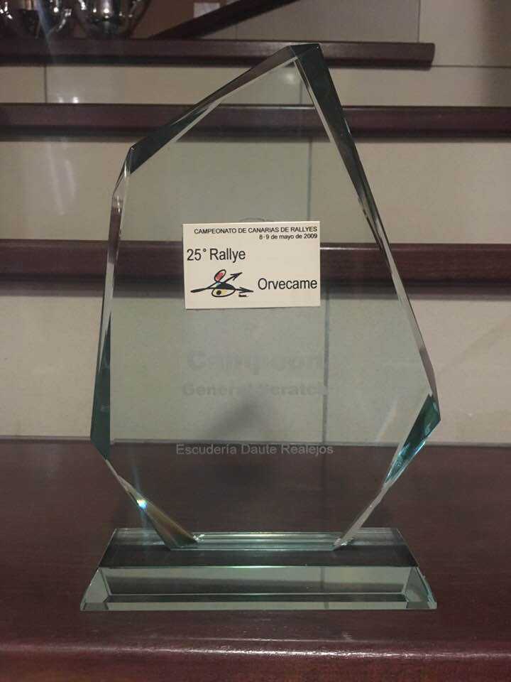 Por eso propongo recaudar fondos para tratar de poner nuestro granito de arena. Para ello pongo este trofeo que recibí ante la mirada de Alex, como ganador de aquel Rallye, para sortearlo con la terminación de las tres últimas cifras de la ONCE del día 20 de Diciembre.