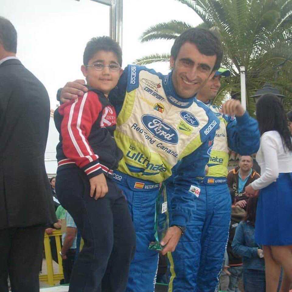 Las casualidades de la vida, este niño y su familia son muy aficionados al deporte del motor, y en aquel Rallye Orvecame Norte del 2009 se acercaron a la meta a saludarnos y fotografiarse con nosotros, los pilotos, pues este niño, ya hoy chaval, ha tenido un accidente hace algunos meses y necesita un tratamiento muy costoso y en Barcelona.
