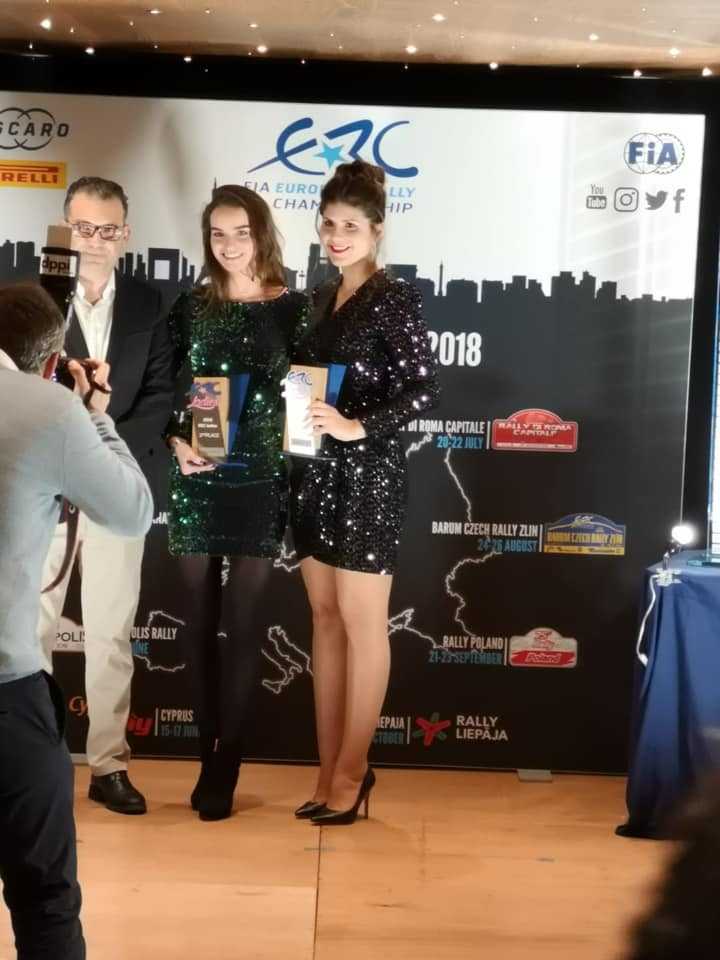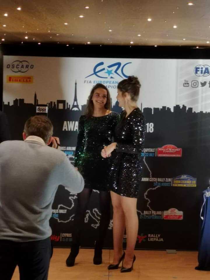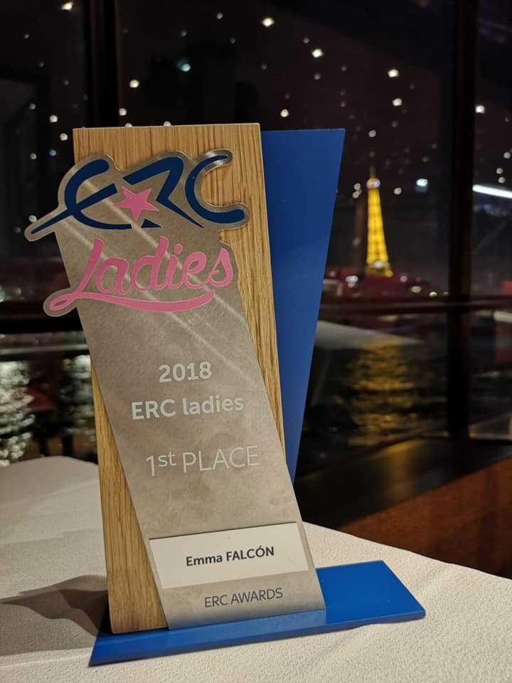 La piloto majorera Emma Falcón recibió en París el premio como campeona del ERC Ladies, estando apoyada por su copiloto, Eduardo González, además de su padre, José Falcón, su novio, Surhayen Pernía, y amigos, como José Pérez, Germán Morales, Karen Hoo, entre otros.