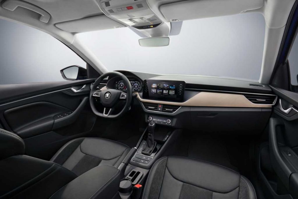 El nuevo interior está basado en el prototipo VISION RS que combina ergonomía y emotividad con la generosa cantidad de espacio típica de ŠKODA. Con el nuevo compacto la marca ha sacado el mayor partido posible a los espacios ofreciendo el maletero más grande de su segmento. La iluminación ambiental, los tonos cálidos y las costuras en color de contraste en la tapicería de los asientos, que están disponibles opcionalmente en microfibra Suedia, crean una atmósfera agradable.