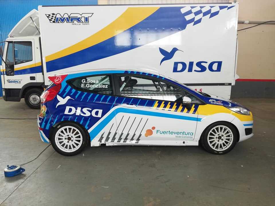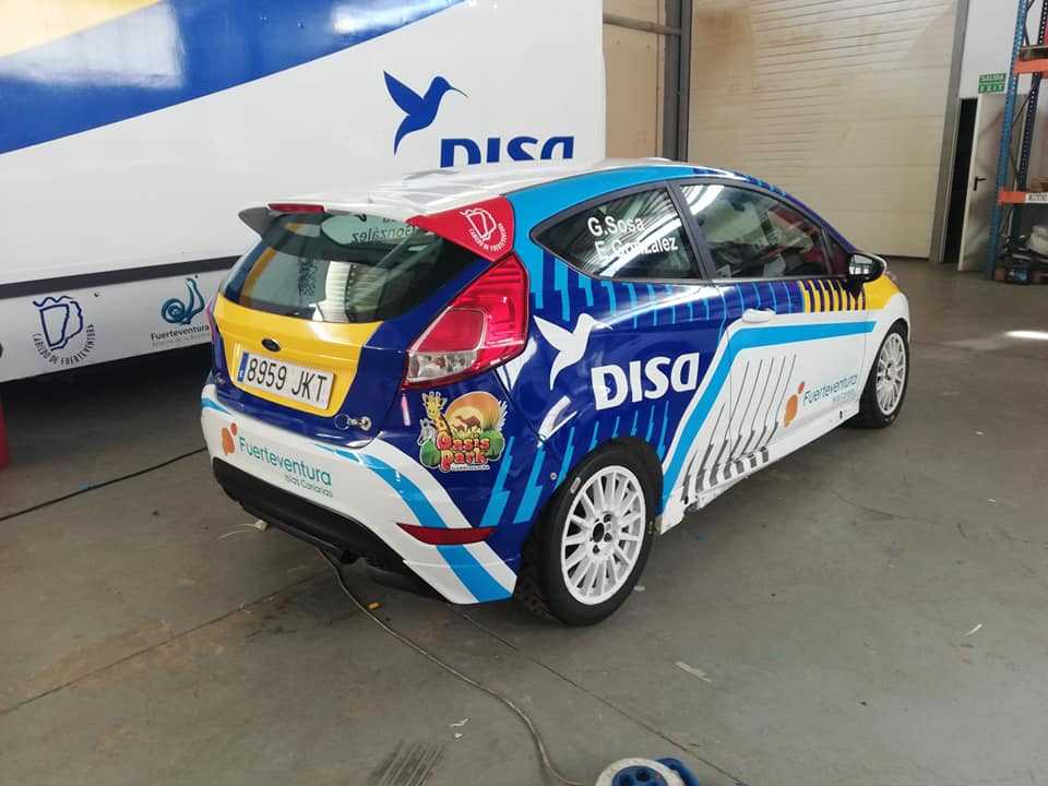 Publicamos el trabajo realizado por parte de Rxc Rotulaciones Gran Canaria de la decoración del Ford Fiesta R2 del majorero Gustavo Sosa y el grancanario Eduardo González con el que competirán este sábado en el II Rallysprint La Vega Nueva (Fuerteventura).