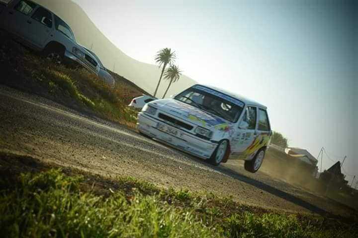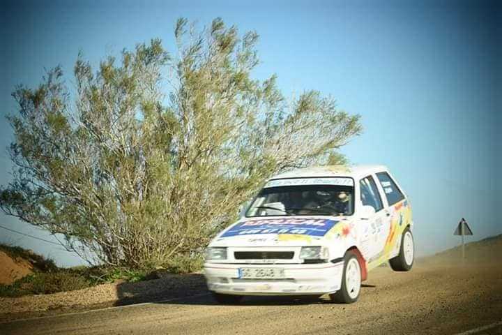 El siempre rápido y efectivo Yaco Betancort, que le saca la quinta esencia a su pequeño Opel Corsa GSI, no tuvo la suerte de cara al romper el palier de su montura en Fuerteventura.