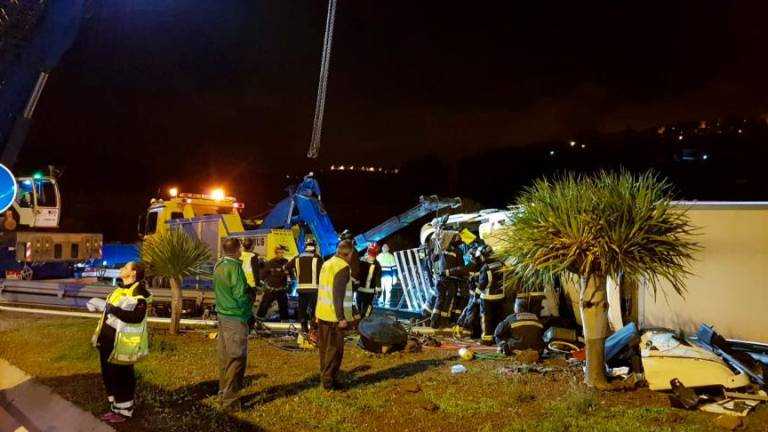 El 1-1-2 del Gobierno de Canarias recibió la alerta por el vuelco de dicho camión, que iba cargado de fruta a Mercalaspalmas, a las 02.58 horas. Junto al conductor fallecido viajaba otra persona que resultó ilesa. Al lugar se desplazaron Bomberos de Las Palmas de Gran Canaria, una ambulancia medicalizada del Servicio de Urgencias Canario (SUC) junto a agentes de la Agrupación de Tráfico de Las Palmas de la Guardia Civil.