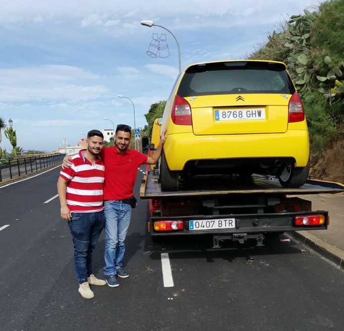 El tinerfeño Yeray Medina vendía su Citroën C2 R2 al palmero Edwi Hernández, montura que le ha dado «una buena parte de mi vida».