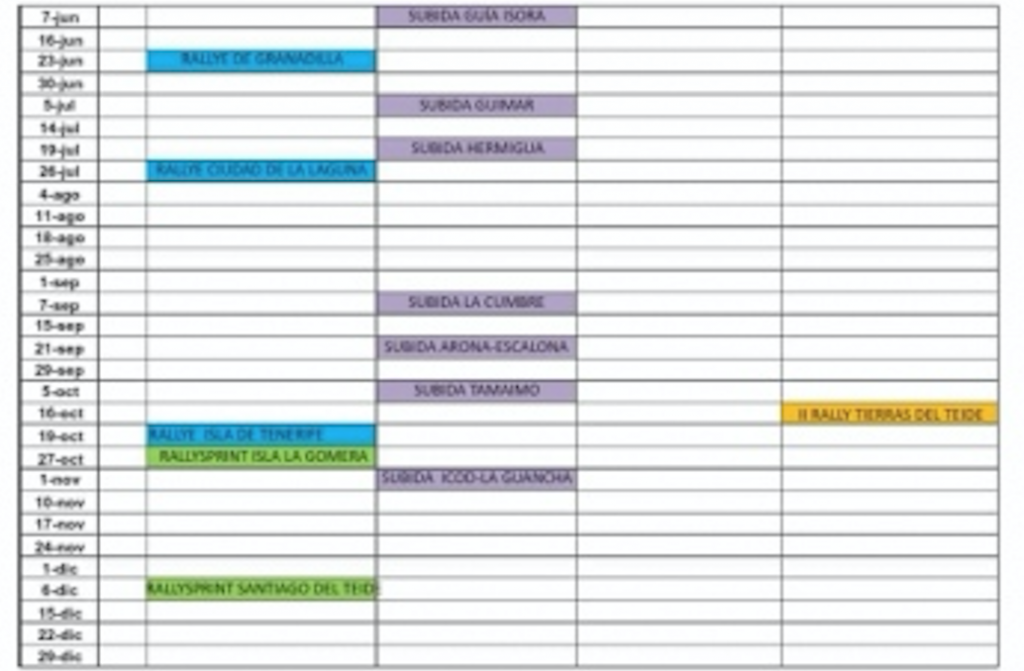 La Federación Insular de Automovilismo de Sabta Cruz de Tenerife (FIASCT) ha sacado un avance del calendario de la próxima temporada 2019.