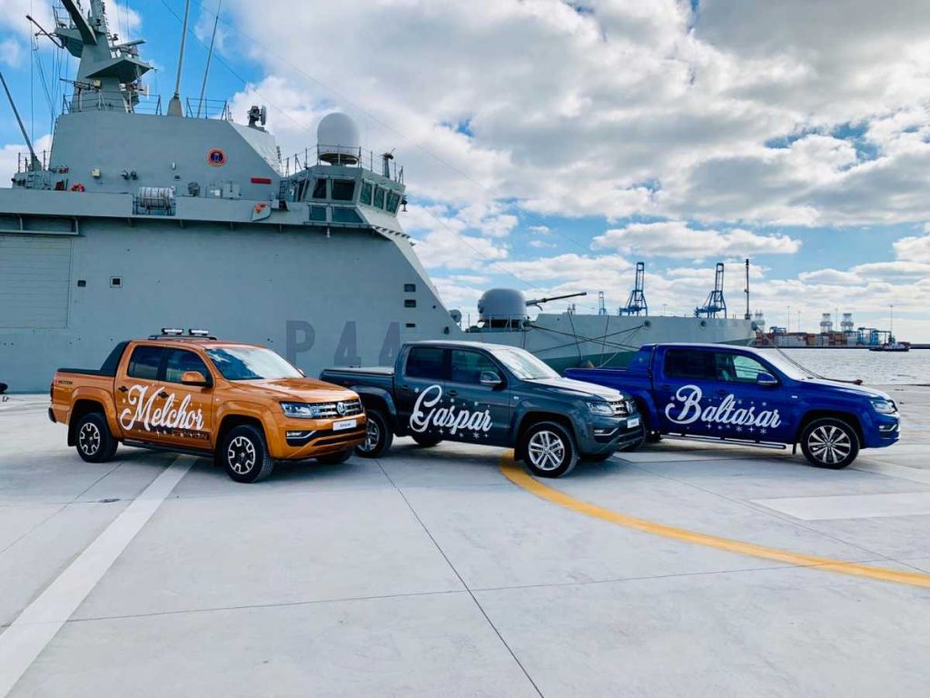 Sus Majestades de Oriente desembarcarán este año en la Base Naval y, un año más, Volkswagen Comerciales Canarias pone al servicio de SS.MM. Los Reyes Magos tres potentes Amarok que serán el transporte más seguro para sus buzones, garantizando que todas las cartas de los más pequeños lleguen a buen recaudo.