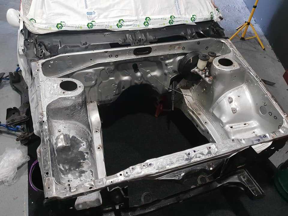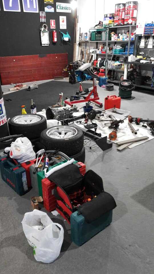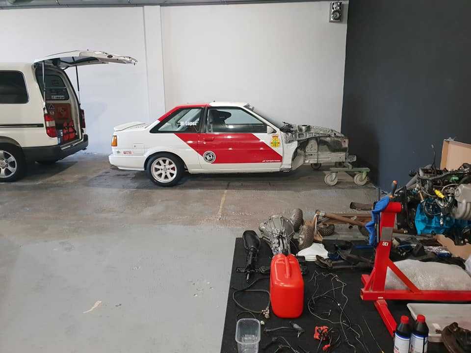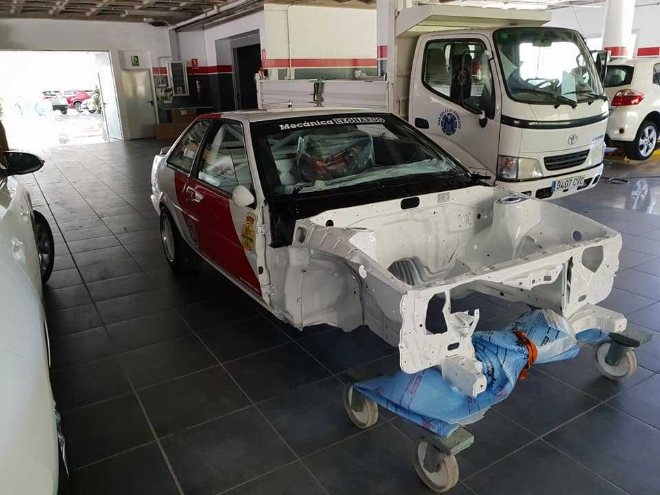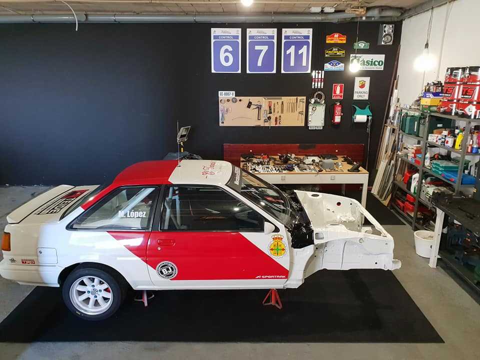El piloto tinerfeño Miguel A. López Regalado repara su Toyota Corolla de grupo TA de cara a la temporada 2019. En su facebook mostró la evolución de las mejoras de su montura.