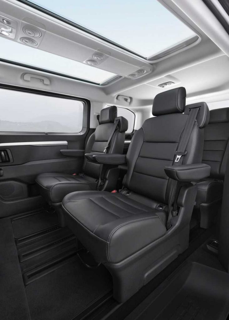 Están disponibles cinco, seis, siete u ocho configuraciones de asientos de cuero. El respaldo abatible del asiento del pasajero delantero permite el transporte de objetos de hasta 3,50 m de longitud. Plegar los asientos de la tercera fila aumenta la capacidad de equipaje del Zafira Life «S» hasta los 1.500 litros (cargado hasta el nivel del techo). La eliminación de los asientos traseros (que son muy fáciles de poner y quitar) eleva la capacidad total de carga hasta los 3.397 litros.
